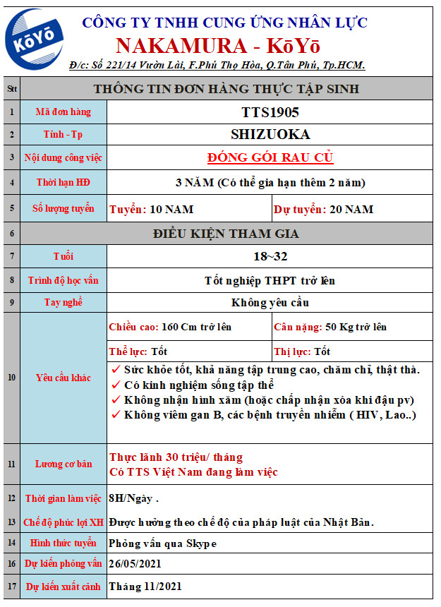 NGÀY PHỎNG VẤN: THÁNG 26/05/2021