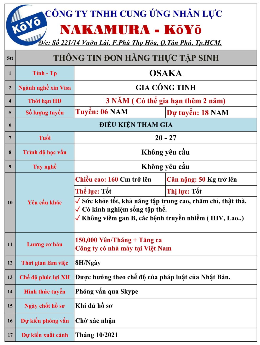 ĐỊA ĐIỂM: TỈNH OSAKA