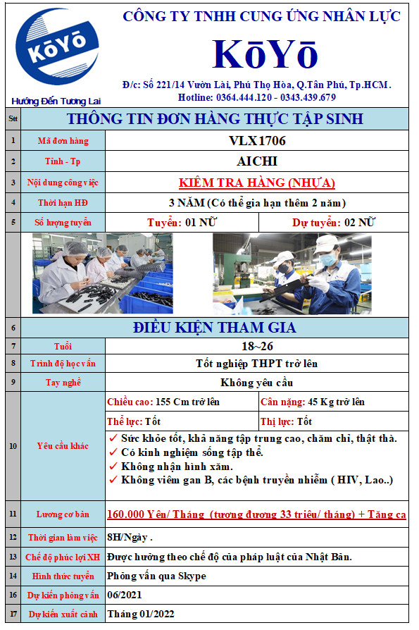 LƯƠNG CƠ BẢN : 167,000YÊN/THÁNG + TĂNG CA