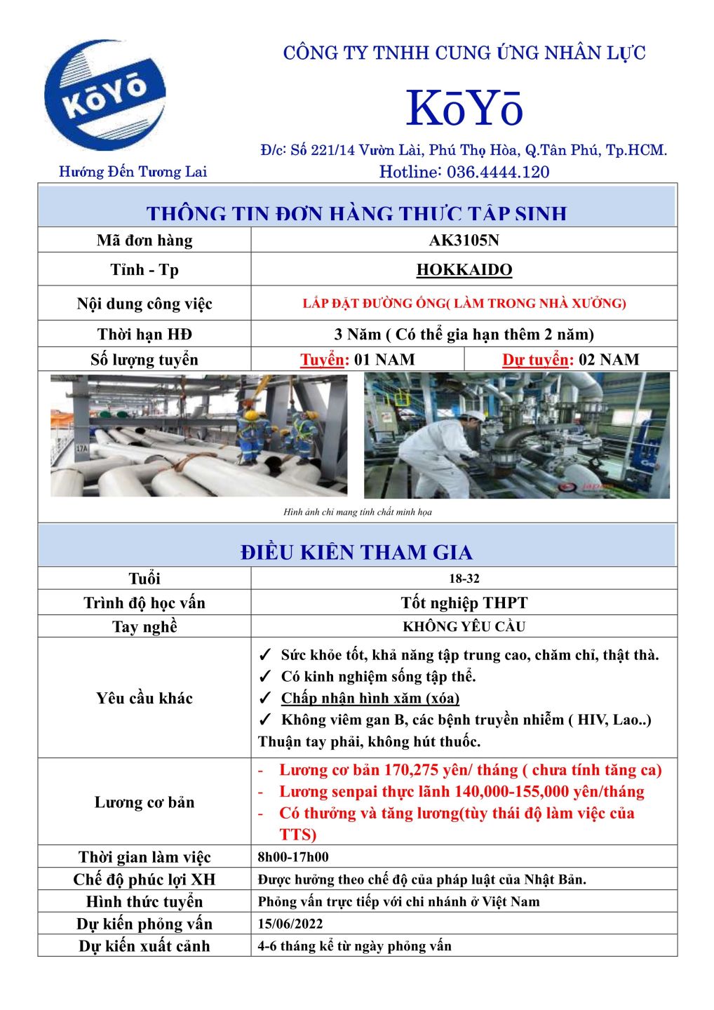 LƯƠNG CƠ BẢN: 170.000 YÊN (CHƯA TÍNH TĂNG CA)