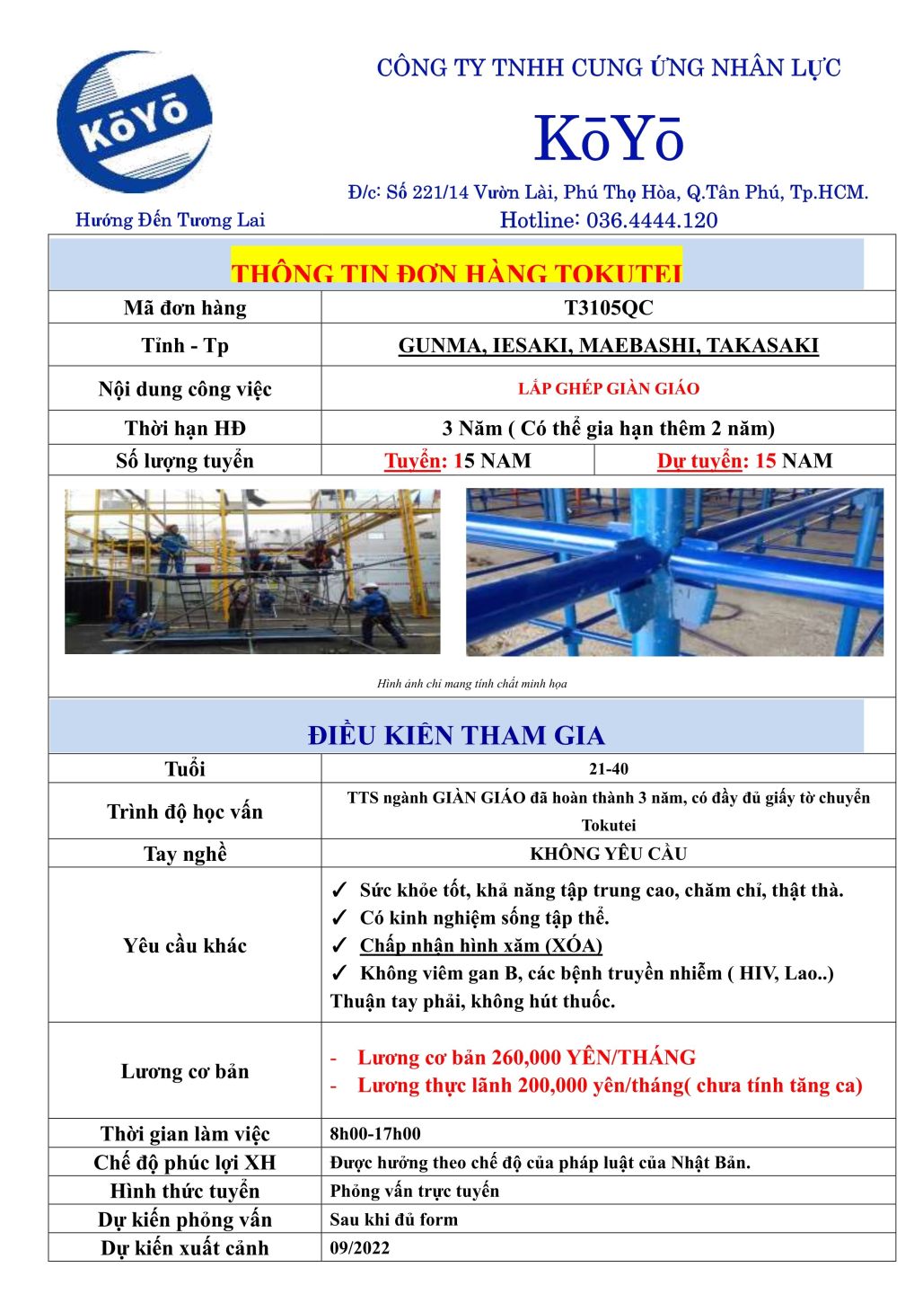 LƯƠNG CƠ BẢN: 260.000 YÊN (CHƯA TÍNH TĂNG CA)