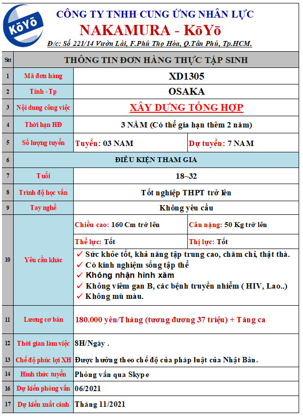 NGÀY PHỎNG VẤN: THÁNG 06/2021
